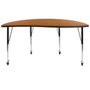 Mobile 60" Half Circle Wave Flexible Collaborative Oak Thermal Laminate Activity Table - Standard Height Adjustable Legs