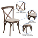 The Cross Back Chair creates a charming and inviting ambiance with its curved lines and smooth finish. The designer cross back adds a modern, yet classic appeal to your dining room. The included cushion will keep you comfortable. Constructed of ash wood and a beautiful Early American finish, this chair is very lightweight, yet extremely strong and wobble-free. These beautiful chairs ship fully assembled, can hold up to 400 pounds and can be stacked 8 high for storage. Designed for commercial and residential use, this durable and attractive bistro style chair is a great choice for your restaurant or dining room at home.