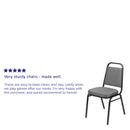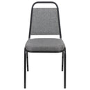 Host beautiful events no matter the occasion with banquet chairs, these stylish ballroom chairs are for casual and formal events. Built for the commercial industry these trapezoidal back banquet chairs with 16 gauge steel frame have been tested to hold up to 500 pounds. With a high seating capacity these stack chairs are perfect for the event rental business, banquet halls, churches, and schools. This hospitality chair can be dressed up with chair covers. The chair is cushioned with 2.5" thick CAL 117 fire retardant foam and is covered in a durable fabric upholstery. Bumper guards prevent scratches on the frame when stacked (up to 10 high) and non-marring floor glides protect your floor. This stacking upholstered stack chair is an excellent option for any commercial setting. Add banquet chairs to your home dining table to add a contrasting look to your dining room or kitchen.