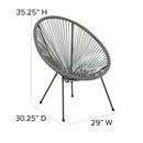 Have fun and relax with flair in this grey woven basket papasan lounge chair that provides comfort with a standout, stylish appearance. Comfort is essential when choosing seating for your home. The oval shaped opening beckons you to sink in and relax. Flexible bungee cord will cradle you as you while away the hours with a good book or catch up with friends and family. If you've ever had an embarrassing seating incident it's not something you would want to repeat. The sturdy rattan and steel material frame holds up to 440 pounds for a worry free seating experience and are durable enough to hold up throughout the years. Plastic floor glides will protect your interior floors. Lounge in the comfort of your home or on the patio on a warm and sunny day and add some cool pillows for a style punch. Clean up spills with a solvent and water-based cleaner such as foam to keep this chair looking great. For longevity, care should be taken to protect from long periods of direct sunlight and wet weather.